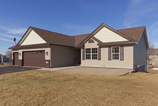 One level living walk-out Rambler - large corner lot - huge open floor plan on main-level with wood floors - 3 bedrooms on main level. Master bedroom is spacious and has its own private bath suite - stainless steel appliances in kitchen - basement is unfinished & has the option of adding 2 more bedrooms a large family room & a full bath - The exterior of the house is wired for seasonal lighting on a timer - 3 car garage - Dakota Rail Trail is across the street. Home is in great shape!!