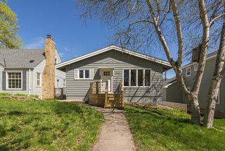 Amazing contemporary mid-century modern $150K top to bottom remodel! This 3 bedroom 2 bath 2 car garage home with walkout lower level has stunning finishes throughout - right next to Waite Park in a desirable area of NE Minneapolis. Custom built one-of-a-kind home with open floor plan - airy 14 FT vaulted ceiling with beams and shiplap throughout the main level. Designer kitchen with gloss white cabinets + island, serving area, Carrara marble countertops, $4K GE stainless appliances (gas range + beverage cooler), glass tile backsplash & more.
