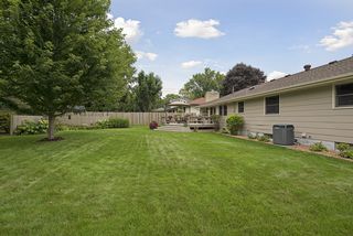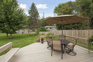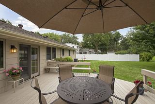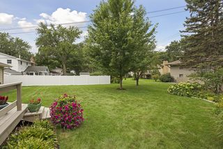 Beautiful Redwood deck in private backyard. Perfect lawn and two Autumn Blaze maple trees!