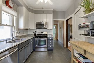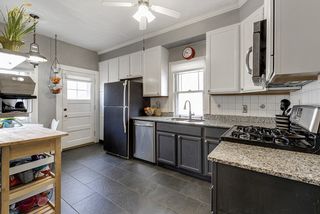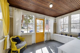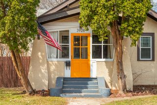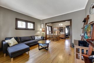 Sunny front porch leads to open formal living and dining. Hardwood flooring and original woodwork throughout.