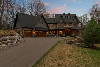 Luxurious & Comfortable! This home sits on a beautiful wooded lot in the Woolman Woods Community. Open floor plan & high end finishing details. 4 bedrooms, each with en suite bathrooms, a guest room in the lower level, three season porch w/ stone fire place, sun-room, plus a sport-court! Master suite with French doors & private spa-like bathroom w/ walk-in shower & soaking tub. The lower level is perfect for entertaining with a beautiful wet bar, theater area, amusement room, and a wine cellar. Truly space for everyone!