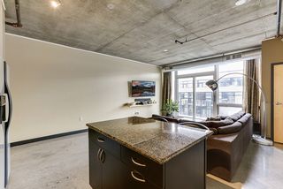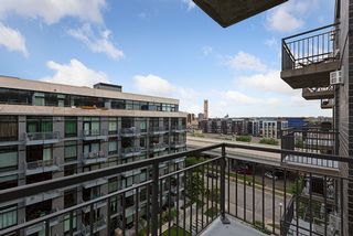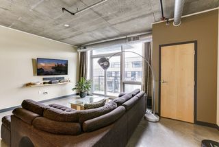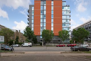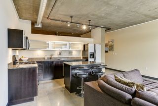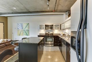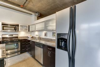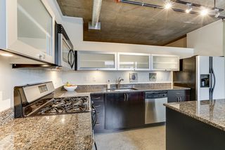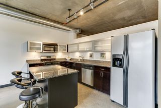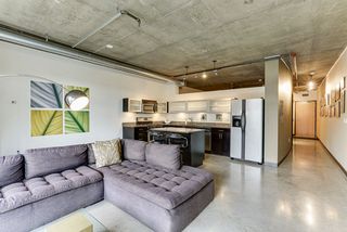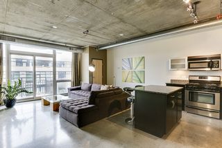 Beautifully finished North Loop loft at 730 Lofts. Stone countertops, kitchen island stainless steel appliances, in-unit washer & dryer, private balcony, heated indoor parking garage (one space), and a storage locker. The building offers a fitness center, community room with pool table, common roof deck, bike storage, and on-site management.