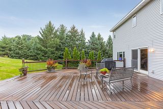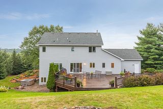 Exquisite 5 Br/4 Ba custom two story with over 3000 sq ft & over 2.5 beautiful rolling acres! Stunning curb appeal featuring gorgeous boulder landscaping & lovely front porch. Open living/dining/kitchen area with granite counters, tile back-splash & stainless appliances :) Beautiful stone fireplace w/ built-ins, brand new carpet & neutral paint. Family room features recessed lights, gas FP, surround & adjacent granite bar! Outside sport court & huge deck plus patio area & hot tub!
