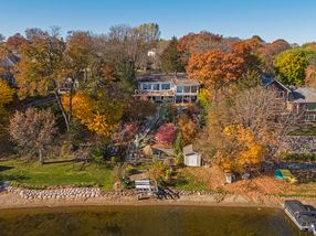 Gorgeous NE facing lakeshore on Lake Minnewashta! Sandy 65' beach, boat house & lakeshore patio make this property perfect for entertaining! This one story home offers main-level living with a spa-like master suite, 4 season porch, vaulted ceilings, beautifully updated kitchen, hardwood floors, walls of windows and spacious deck to enjoy the stunning long lake views. Lower level walkout offers huge family rm, game area & access to covered patio. This 5 BR lake home has it all!