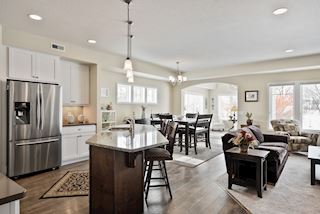 The best lot in sought after River Hills Development. Luxury main level living. All of the upgrades available. Quartz countertops and center island, open floor plan, 9 ft. ceilings, knock down texture, vaults, and recessed lights. High-end stainless steel appliances and high-end windows with custom window treatments. The four season sun-room walks out to a huge patio and overlooks beautiful woods and pond. Insulated, dry-walled painted 3 car garage paver driveway on cul-de-sac. Absolute Perfection!