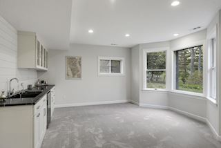 The Expansive Lower Level Features 2,500 Square Feet Of Open Space With Uncommonly High 9 Foot Ceilings And Brand New Elegant Box Pattern Carpet. Big Open Living Room, Two Bedrooms, Two Huge Luxury Baths, Open Office With Custom Built-In Box Pattern Wall Desk, TV Family Room With Striped Wood Accent Wall, Bonus Room, And 17X9 Finished Storage Area. Wet Bar With Matching Pietra Grey Honed Marble - Glass Front Cabinets & Shiplap Backsplash - Danze Faucet & Beverage Refrigerator. Fully Drain Tiled With A Poured Concrete Foundation.