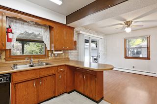Solid, well-built home with all 3 bedrooms on the main level, spacious size rooms, lots of storage space, a gas fireplace, retro kitchen in good condition, detached garage is heated, large deck, patio, shed (16X16) is also heated. The roof is only 5 years old, leaf guard gutters, and fenced yard with .35 acre lot. This is a diamond in the rough waiting for your personal touch.