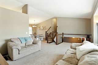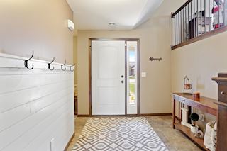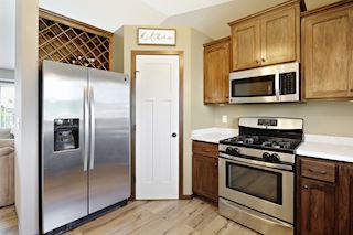Huge welcoming main floor entry area leads up to sunny vaulted living room with open floor plan to informal dining/eat-in kitchen with stainless steel kitchen appliances and walk-in pantry.