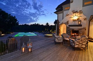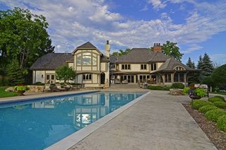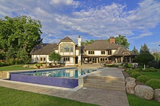 Exquisite English Manor on one of the premier estate sites in Lake Minnetonka's popular Boulder Bridge Farm neighborhood! Originally built in 1984 by Steiner Koppelman, this home has been totally renovated and enlarged in 2007 with only the finest materials and details by Sharratt Design Company and Robert Craig Homes! This home is for the person that appreciates quality workmanship and authentic detailing! The 1.35 acre setting is very private from all directions and has spectacular sunset views in all seasons! The home is set back from the street by a long circular drive that leads to a brick paver area at the front of the home. The massive leaded glass door and its stone arched entrance is the focal point of the manor. The entire exterior has wonderful character created by different details in stone, brick, stucco, and wood trim boards. There are copper gutters and downspouts that will take on a wonderful patina over the years, and the entire grounds have been professionally landscaped with large evergreens, birch, flowers, and a variety of shrubbery, all highlighted by glowing landscape lighting. The interior of the home includes details such as the walnut floors that were hand-scrapped on site, the custom carved fireplace mantle in the Great Room that was made to match the antique cabinet in the Dinette that is now a built-in service bar, and all the marble, crystal, and solid brass hardware that are the "jewelry" of the home! But the truly wonderful feature unique to this property is the backyard setting so special it must be shared with family and friends! The owners have created an oasis for entertaining that includes an "Infinity Pool" that appears to flow right off into the large pond at the end of the property, a soothing hot tub, gas fire pit with glowing rocks, and an expansive deck with a stainless steel outdoor kitchen and a large wood-burning fireplace! All of this is completely private and there is still plenty of room for yard games and the family dog to run! In addition to all these great amenities, the owner is a car enthusiast, so the custom garage features room for five automobiles, storage cabinetry, workshop space, and is finished and heated of course! You can only appreciate all of these fine qualities by calling for your private showing!