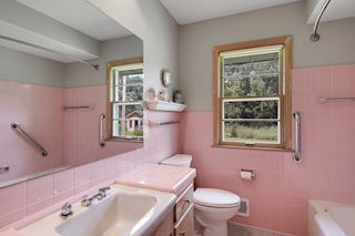 This delightful home has original ceramic tile in two bathrooms, thoughtful built-ins, a custom designed pantry, and two wood-burning fireplaces.