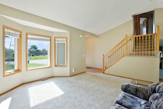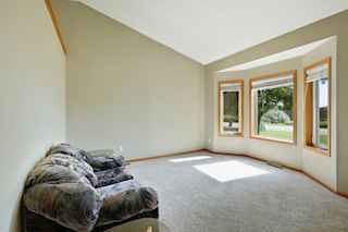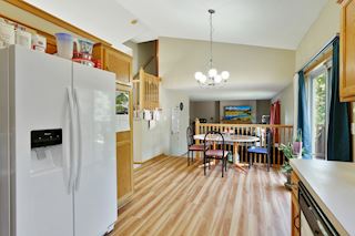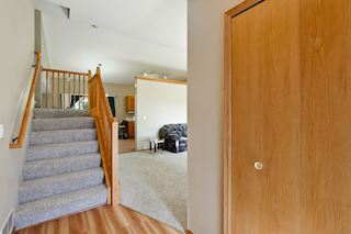 Open floor plan with new carpet on main and upper levels. Vaulted ceilings and beautiful window in living room. Lovely mill work and natural light throughout.