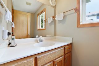 Mudroom garage entry, plus half bath. Laundry on main level with more cabinet storage.