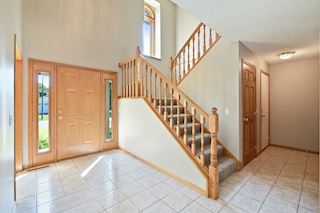 This amazing move-in ready four-bed, four-bath family home boasts a large bright vaulted entry and living room and a sun room that walks out to a spacious deck with wooded privacy and tranquil lake views!