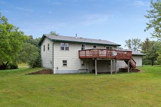 Great potential with this walkout split entry on almost 1-acre lot. 3 bedrooms, 2 bathrooms and a 2 stall insulated and heated garage. Modine industrial heater approx. 80,000 BTU’s. Space in the lower level to finish a 4th bedroom or office. The shed is 12 X 8, the large cedar deck off the informal dining allows you to enjoy your beautiful lot. Failed septic but seller will bring septic up to code with an acceptable offer. Needs some work but home is priced accordingly – awesome potential!