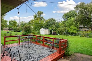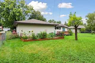 Huge yard with chain link fence. Storage shed, garden area, plus adorable chicken coop.
