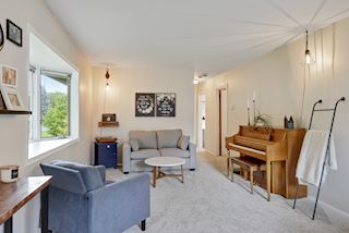 Carefree vinyl plank flooring on main and lower levels, new carpet in living room.