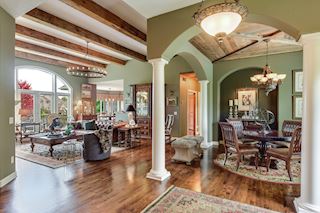 Flawless executive walkout rambler home nestled on quiet cul-de-sac in Victoria’s Watermark neighborhood. This former Parade of Homes model has been lovingly cared for by these original owners who have made many improvements. The sellers are fastidious about keeping things tip-top. Open and airy design and loaded with high end finishes, this is a once in a generation opportunity. From the stunning great room with new beams on the ceiling to the spacious Master Suite to the warm and clubby paneled office to the screened porch with a large fireplace, everything is incredible. The lower level bar area is really more of a kitchen and the recreation room is warm and cozy. The bedrooms are spacious with ample closet space and every inch looks like a designer’s showroom. You will fall in love with majestic home.