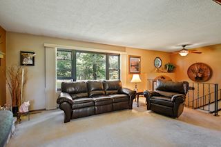 Looking for a home where you can earn instant equity? This split entry walkout is on a gorgeous 1.05 acre lot with mature trees, 2 stall attached garage & 1 stall detached on a private corner lot. Two wood burning fireplaces & a maintenance free deck of the informal dining area. Lower level office would need a closet to be a bedroom.