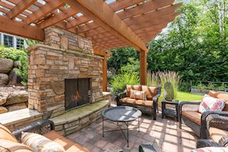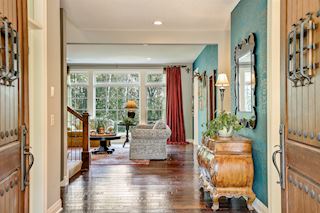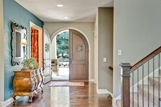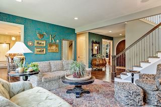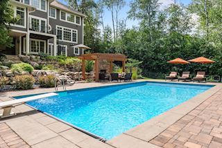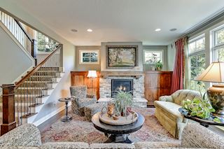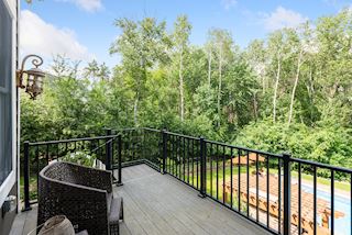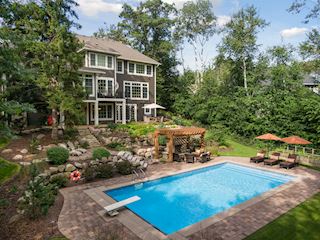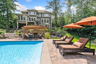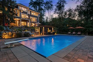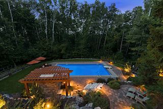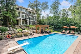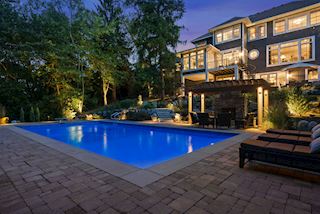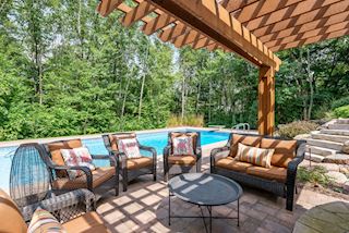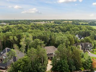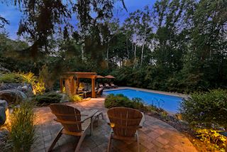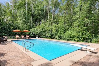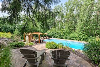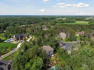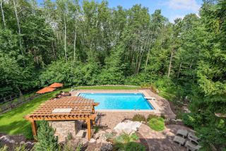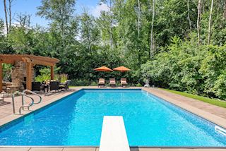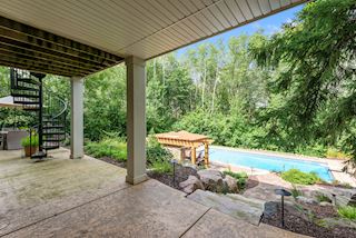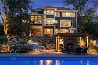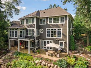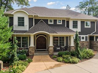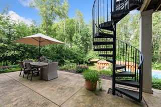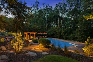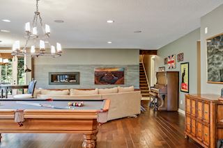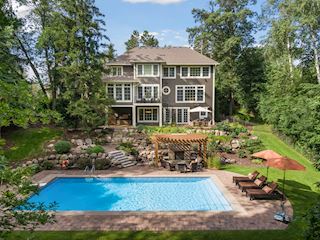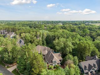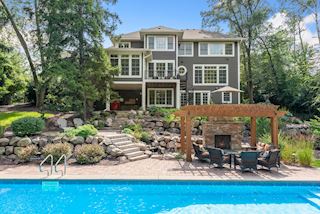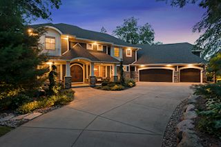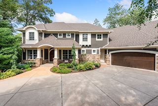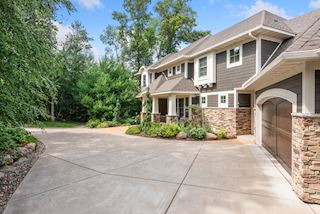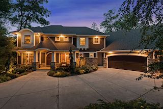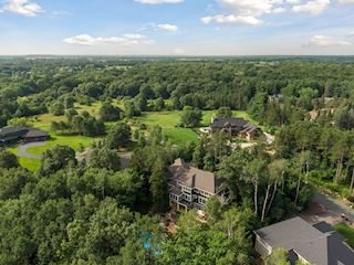 Experience an idyllic lifestyle in this stunning home nestled on wooded estate on 3/4 acre, located in a beautifully landscaped private setting. Perfect blend of cottage and Artisan styling lends a timeless look to this home that will impress all. Comfortable elegance with luxurious finishes. Spacious, yet intimate-designed for both family living and entertaining! Custom built jewel! Privacy unlike any other, yet close to everything. Magnificent retreat home with outdoor pool with multiple entertaining spaces, gorgeous exterior lighting wraps the home, indoor sport court, several living/entertaining spaces, hand-scraped walnut floors throughout entire home, enamel trim, spiral staircase, hidden overlook window/bench seating area from kitchen to sport court, secret bookcase door to huge bonus room. 5 car heated garage. Wonderful details contribute to the lovely character of this well designed home. One owner. Private, serene, quiet; magical! An escape from city life, this home retains a retreat-like ambiance.