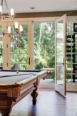 • SUN ROOM: Celebrate the seasons in the sun room wrapped in windows. With its mesmerizing environment, this space offers a tree house like setting surrounded by beautiful pines.