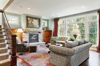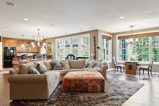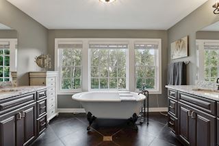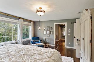 • MASTER: Large picture windows allowing for great views of the woods, very large walk-in closet and separate room for relaxing, glam center or changing area.