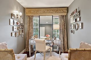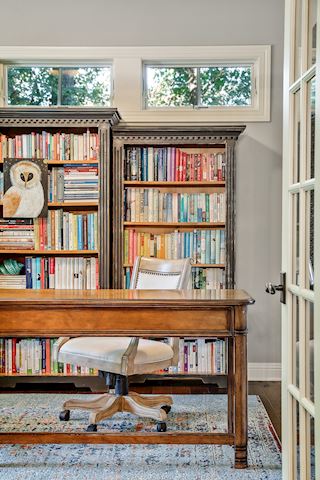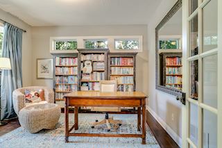 • DEN: French doors for privacy, open the window to hear the outside water feature and the birds in the trees.