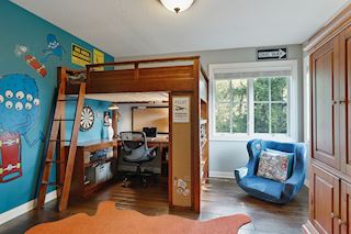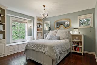 • BEDROOMS: Curl up with cozy reading bench with lighting, beautiful built-in bookcases and cabinet storage.