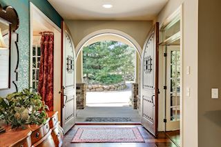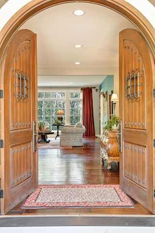 • BARREL VAULT ENTRY: Enchanting solid wood front entry double-doors with unique speak-easy windows, which include pop-out screens. As you enter this home you will be swept away by the attention to detail.