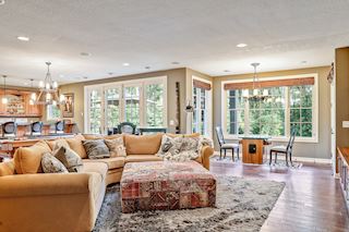 • LOWER LEVEL: Spacious walk-out lower level offers lots of entertaining options. Large windows offer dramatic back yard views. Walk out from the lower level family room to a beautiful patio with expansive breathtaking wooded views. Perfect for entertaining.