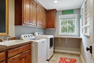 • LAUNDRY: Convenient upper level laundry room with sink, cabinets, folding counter.