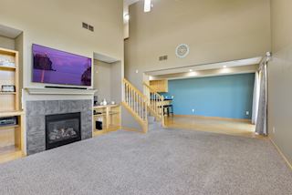 Welcome Home!! This former model has all the bells and whistles... As you enter the home, you'll first notice how spacious the it is with it's soaring two story vaulted living room with built-in cabinets surrounding the warm and cozy gas fireplace. Next to the living room is the kitchen and dinette. The dinette is spacious enough to fit a formal dining room table! The kitchen is loaded with tons of cabinets and stainless steel appliances. There is plenty of space to whip up a culinary masterpiece! Adjacent to the dinette is a sliding glass door leading you outside to the patio and spacious yard! Upstairs, you'll find the laundry room, 3 large bedrooms, including a large master suite featuring a private bath with double vanity and spacious walk in closet. Don't delay, this one won't last!