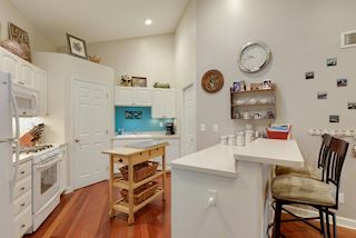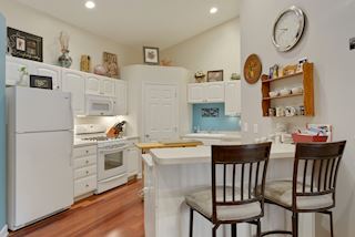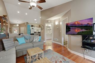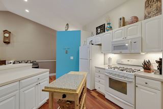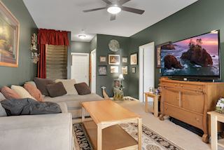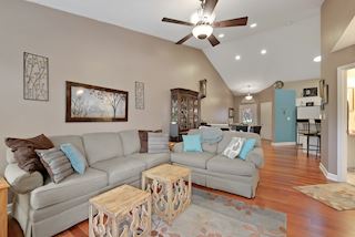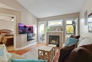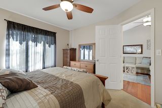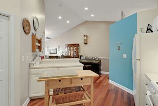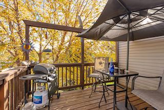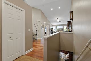 As you walk into the home you’ll notice the vaulted ceilings, the light and open floor plan as well as the beautiful cherry hardwood floors. Immediately on your left your greeted by the large kitchen complete with a quality appliances including a gas range and two pantries to store all your goodies! The kitchen also has a breakfast bar! Across from the kitchen you’ll find the dining room adjacent to the family room with a cozy gas fireplace to warm you up or just to add to the warm and cozy ambience to the home. On the other side of the fireplace you have a spacious deck. Perfect for a BBQ or to sit, relax and enjoy your day! The main level bedroom is perfectly situated and has tons of closet space!