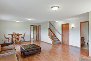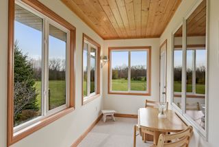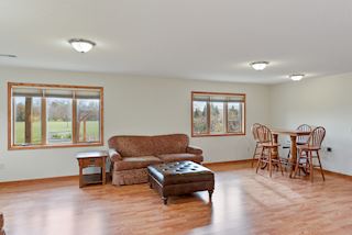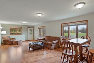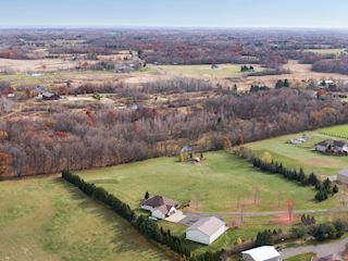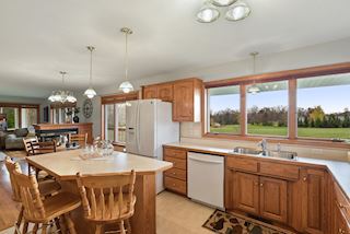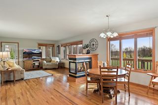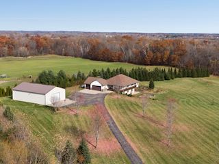 Original Owner 2003 Walk-out Rambler on almost 6 acres with a 40X56 pole barn that has electric (100 amp), insulated, floor drain and radiant heat. It’s obvious the owner loved their home and yard with the abundance of beautiful trees, bushes, and perennials. Includes gutters on the house and pole building, beautiful maple lined driveway, and a small pond in back. The house has many special features such as a 3 sided gas fireplace, solid oak 6-panel doors, many built-ins, sunroom, a wraparound porch w 2 sides covered, front patio, and a walk-out to back patio.