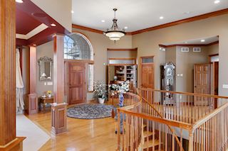 Custom built JB Woodfitter property situated on one of the most desired lots in Crestview Estates. Located on nearly 5 acres, this carefully designed home offers rare privacy and endless breathtaking views. Cement driveway leads you up to the 3 bedroom, 3 bath home. A grand entryway welcomes you to main floor living at it's finest! Gourmet kitchen features custom cabinetry, granite counters, top end stainless steel appliances and gas cooktop. The open layout is accented by vaulted ceilings in the living room and cozied up with gas fireplace and windows galore. Spacious main floor master bedroom and stunning master bath with separate soaking tub and walk-in shower. Executive office and laundry complete the main level. The house comes to life as you make your way down the winding staircase to the basement. Highlighted by the billiard room, bar where everybody knows your name, wine cellar and home theatre. Stone fireplace and family room. 2 additional beds and guest bath. 8 car garage!