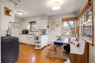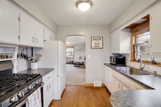 Charming one story home in St Paul with hardwood floors, updated bath fixtures, tub surround and vanity, subway tile backsplash in the kitchen, newer furnace, A/C, and water heater. Enjoy summer nights grilling and entertaining on the deck off the kitchen!