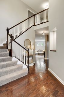 Vaulted entry way and masterful, grand staircase welcomes you into this stunning 5 bed, 4 bath property. The open floor plan and oversized center island in the kitchen conveniently brings the entire main level together. Formal, informal dining areas and office are within steps and the living room with cozy gas fireplace is always in view. Hardwood floors, granite counters and stainless steel appliances! Upper level features 4 bedrooms and laundry room. Large master bedroom and bath with separate soaking tub and shower. Relax knowing everyone under the roof is just down the hall. Lower level offers enormous family space, fitness area and 5th bedroom. Relax on the enchanting backyard patio and enjoy the benefits of a quiet, corner, cul-de-sac lot. Patio smoothly transitions into oversized, flat side yard. Wooded lot line provides rare privacy. Top Rated Wayzata School District.