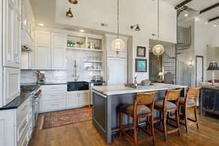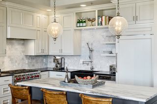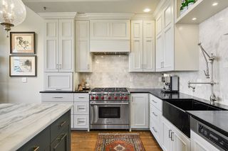 This amazing condo has a deluxe chef's kitchen with a gas "Wolf" range; "Subzero" refrigerator/ freezer; Custom cabinets; Soapstone counters with a farmhouse sink; Center island with a marble top; Hardwood floors; All new lighting; Two beautiful updated baths with original doors; In-unit laundry; Two large closets in the master bedroom and so much more...