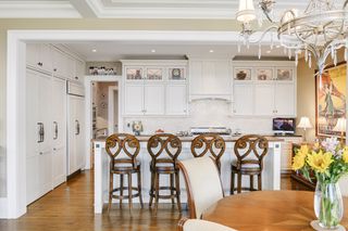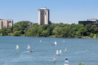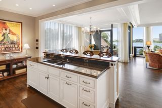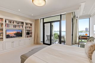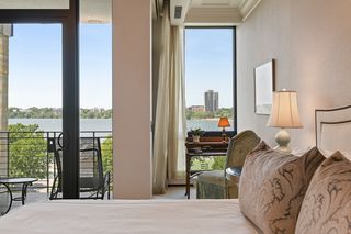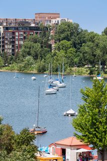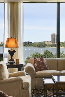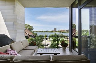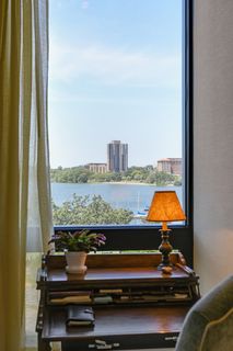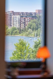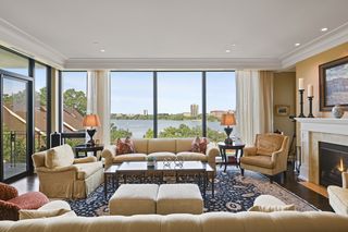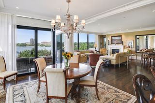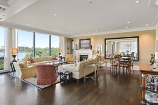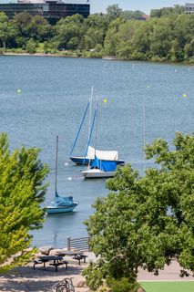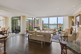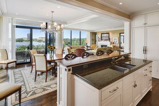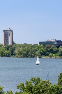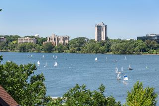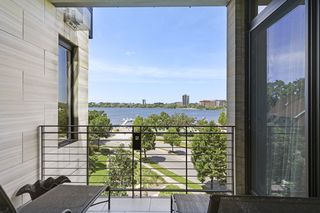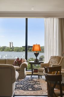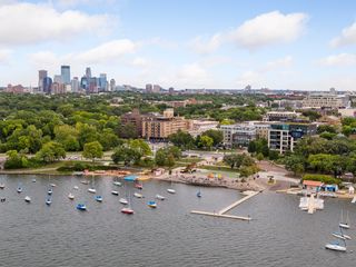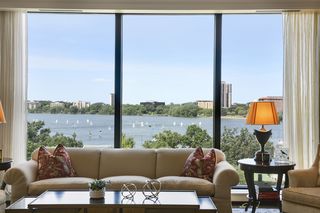 Stunning Streeter & Associates masterpiece located in the iconic, modern Edgewater complex has the timeless feel of an elegant New York apartment with the most spectacular West facing views of Lake Bde Maka Ska. Offered for the first time, this Peterssen/Keller Architecture design has the feel of a single family home with all the conveniences of a condominium lifestyle. The formal multi-chambered entryway has immediate views of the lake, limestone and marble lined floors, deep crown moldings and 10” baseboards. It opens to the stunning acoustically soundproof music room/library with custom floor-to-ceiling cabinetry and hidden recessed doors that open to the owners’ private suite. Wonderful entertaining space for listening to your favorite jazz trio or curling up with a good book on a rainy day. Leaded glass French doors and transom windows with walnut stained rift-sawn white oak floors open to the bright and airy living room, dining room and chef’s kitchen.