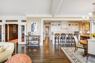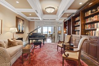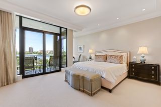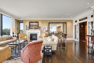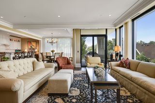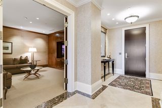 The residence features 3 bedrooms, 3 bathrooms, open living room with gas fireplace, dining room that seats up to 12 people and center island kitchen with butler’s pantry, floor-to-ceiling window walls covered by gorgeous sheer fabric curtains and remote control window shades, large balcony with gas grill, private owners’ suite with second private balcony, state of the art owners’ bath and walk-in closet, beautiful powder room, separate media room (2nd bedroom), office (3rd bedroom with ensuite bath), mud room/exercise room/laundry room with separate back hall entry and three consecutive parking stalls in the underground heated garage.