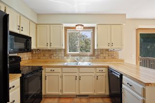 Clean 2BR 2BA 2CAR Eden Prairie twin home on a cul de sac with view of Mitchell lake! Move-in ready with NO MONTHLY ASSOCIATION FEE! Freshly painted and cleaned this week. Open main level with kitchen peninsula, pantry, wood burning brick fireplace, and dining space with access to a wonderful rear deck. Two bedrooms and a full bath upstairs with tiled shower. Lower level features a great family room, bathroom, second brick fireplace, space for an office or other flexible use room, and laundry area.