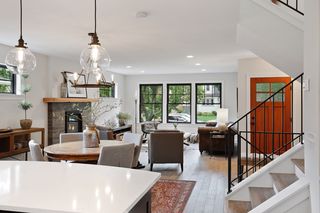 Main floor: Open floor plan includes foyer with closet, gas fireplace, powder bath, mud room with porcelain tile built-in cubbies and washer/dryer hook-up.
