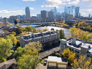 Embark on Global Adventures Within This Historic Masterpiece. Rarely available, this fully custom historic property on the coveted quiet and serene Nicollet Island in-between downtown Minneapolis and Artistic Northeast Minneapolis boasts over $3 million in renovations. Built in the French 2nd Empire style, this architectural gem offers an unparalleled living experience. Step into the grand foyer, where only four exclusive residences reside. Each unit unveils a world of wonder behind its 8-foot doors. A Journey Through Time and Space awaits you with Soaring Hand-painted 9 and 10-foot ceilings evoke the grandeur and scenes of the Palace of Versailles, transporting you to another era. Elegant Details: Admire custom wood stair railings, gleaming hardwood floors, and the warmth of a Heat-N-Glow gas fireplace in the formal living and dining room. Lavish Half Bath: Immerse yourself in a world of luxury with velvet-clad walls, a cathedral ceiling, a solid marble floor, and exquisite custom wood framing. The Gourmet Kitchen: Indulge your culinary passions in this masterpiece featuring barrel ceilings, authenticated chandeliers, copper-stamped ceiling tiles, an AGA range, under-cabinet lighting, a walk-in pantry, built-in appliances, and custom mosaic backsplashes. A Fusion of Cultures: Descend to a realm of Asian influence, where custom furniture, marble floors, intricate wood carvings, coffered ceilings, and Soji screen-inspired doors and wall dividers create a serene atmosphere. Primary Ensuite: Unwind in a luxurious primary ensuite featuring a solid stone tub with a custom dragon faucet carved from a single slab. Enjoy the rejuvenating experience of a separate private steam shower. The Second Bedroom/Den: This versatile space showcases a wood-beamed ceiling, a cork floor with walnut inlay, custom stained glass windows, quarter-sawn oak wainscoting, and a picture rail. A Private Oasis: Step out onto the private fenced back patio, adorned with an ornamental tree, and savor the tranquility of summer evenings. A Subterranean Wonder: Descend further to a unique sublevel, a Baroque-esque masterpiece featuring hand-carved wood pillars, arched woven lattice with backlighting, and a captivating waterfall feature on the stone wall. An Entertaining Hub: Complete with a wet bar and a beverage fridge with an ice maker, this space is perfect for hosting unforgettable gatherings. Magnifique! Every surface of this extraordinary residence is a testament to meticulous craftsmanship and exquisite design. And just outside your door you can enjoy the trails and parkways of the Grand Rounds Scenic Byway that showcase parks and lakes, gardens, historical sites, and diverse neighborhoods. Including award wining restaurants, music venues, The Gutherie Theater, and parks that feature amphitheaters, annual festivals and all the eclectic vibrancy that is the Twin Cities. Consistently rated one of the best places to live in the country.