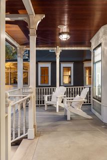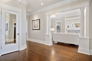 Charming front porch opens up a grand foyer and staircase. Sitting room off the entry with wood burning fireplace. Hardwood floors reach across the main level. Gourmet kitchen featuring top of the line stainless appliances; Sub Zero refrigerator and freezer, wine fridge, double ovens and Wolf gas range. Statement center island, marble counters and eat-in breakfast area. Formal dining room, powder room and family room.
