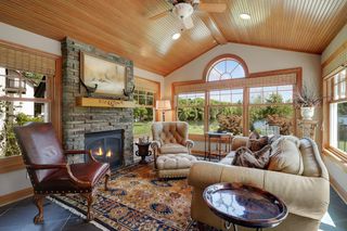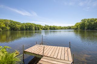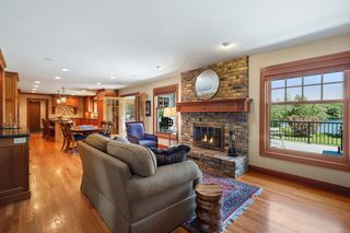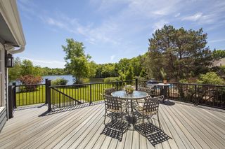 Roof replaced 2020. 3 Stall garage can hold 4 cars plus toys... and there is a 2nd garage / workshop you can only access from the back of the house / behind the garage. Great outside space with 16 x 15 “Trex” deck, Paver and Stone patio below and another stone patio by the pond with a Fire-pit, sports court and dock private dock. Owners and Neighbors run "bubblers" in the pond to improve water clarity. Interior features 4 fireplaces; 2 wood burning, 2 gas. There are 3 beautiful baths on the 2nd floor (Full Master with walk-in shower steam shower and whirlpool tub; and 2 more off the hall, a 1/2 Bath on the main floor and a beautiful 3/4 basement bath.