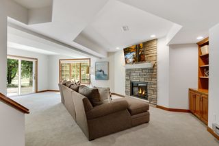 Stunning updated original Interlachen Woods model home! Gorgeous original cherry woodwork and coffered ceilings accent the main level. Grand entry with winder staircase and cast iron chandelier. 2 story vaulted ceilings in the living room, floor to ceiling windows and brick gas fireplace. Remodeled kitchen features an 11' center island, porcelain counters, stainless steel appliances and gas cooktop. French doors open up to cozy 4 season sunroom. Formal dining room just off the kitchen. Executive level office, sitting area with additional gas fireplace and main floor laundry. Upper level features catwalk overlooking the main floor, 4 bedrooms with updated full guest bathroom. Spacious master bedroom with walk-in closet. Master bath with his and her sinks, walk-in shower and separate tub. Lower level walk-out with gas fireplace, wet bar, added 5th bedroom in-law suite and bath. Huge storage area. Central and convenient location. One block to Interlachen Park. Top Rated Woodbury High School!