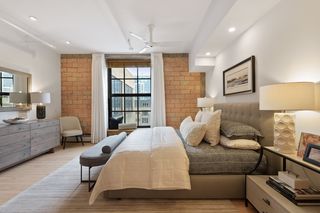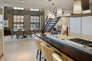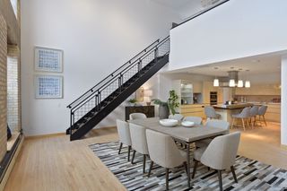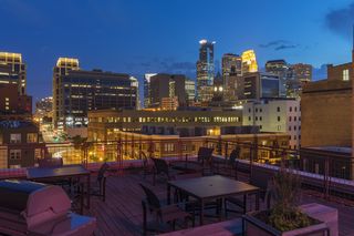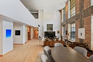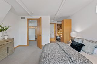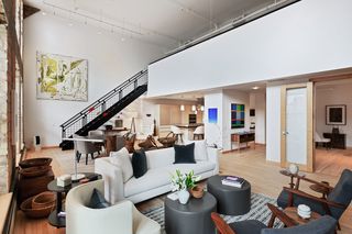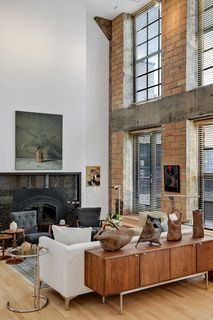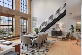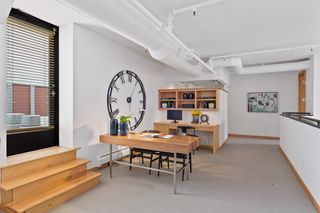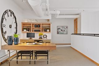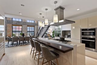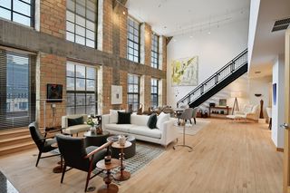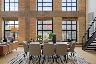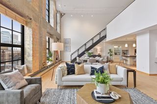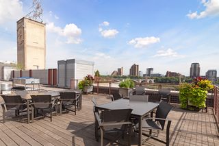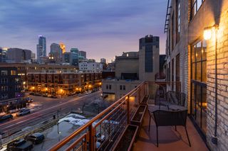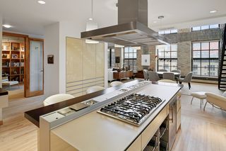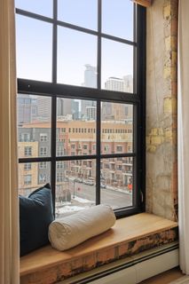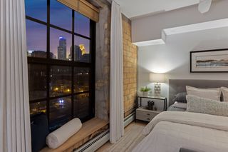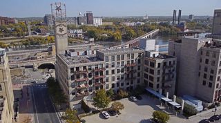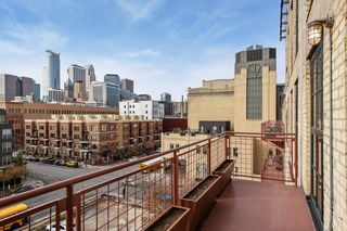 Spectacular one-of-a-kind loft penthouse in the historic North Star Lofts. Highly sought-after Mill District location along the Mississippi riverfront and steps from the picturesque Stone Arch Bridge. Features include original limestone brick, soaring twenty foot ceilings in the main living area with two stories of windows, 3/4" solid hardwood floors, wood-burning fireplace, main level living, and modern finishes including a gourmet designer kitchen. Spacious owner's suite with walk-in closet, elegant owner's bath, and laundry room on main level. Separate 2nd bedroom suite, living area, and office on the upper level. This home delivers sophistication, luxury, style, stunning architecture, abundant natural light, a spacious floor plan, and commanding views of the Minneapolis skyline. Enjoy direct access from the unit to the fabulous shared rooftop deck. Main level balcony. City skyline views. Four parking spaces! Storage. Walk everywhere!