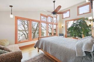 This Modern 4 bedroom, plus 3 office/den areas and 5 bath home sits on 103' of south facing lakeshore on Lower Prior Lake. With a total of a 5,058 finished square feet the home offers many unique features such as main floor bedroom suite, lower level wine cellar, exercise room and main floor solarium. The seller's have created this modern masterpiece with triple glazed Loewen windows, Wolf appliances, Asko dishwasher and Sub Zero refrigerator in main kitchen, Main floor and lower level laundries, Oak or bamboo hardwood floor throughout house, Clear Douglas Fir built ins and trim throughout and heated 3 car garage. The lakeshore has incredible views, multiple decks, four season beach house, 2 sandy beaches and multiple docks to enjoy your 103' of south facing lakeshore.