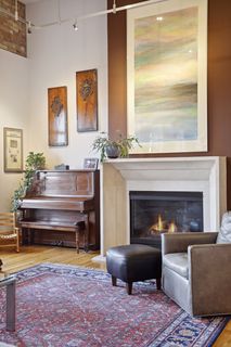 Retreat to the lovely master bedroom and Spa Bath for total relaxation! This unit also features a 2nd bedroom plus a den, 3/4 bath, built-in bookcases, hardwood floors, high ceilings, a beautiful stone surround gas fireplace in the main living room and so much more.