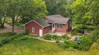 This "Storybook" Cottage sits on 6+ Acres. Surrounded by woods, open grass area and a pond. Originally built in 1950, but the whole main level has been beautifully updated with a vaulted great room, stone surround gas fireplace, newer windows, hardwood floors and air conditioning. There is an attached 2 car garage plus a newer outbuilding for more toys and gardening tools. It is a perfect hobby room or make a work from home office. It is set up with 220 v service and cable, windows, and a garage door. This home as a newer roof, new forced air furnace with AC, new siding, updated kitchen with new appliances, updated lighting and newer bath. Lower level is unfinished, great for storage, workshop and laundry. If you want some space for your pets to run, snowmobile on your own trails, or just relax on the back deck... this is for you! A country lifestyle close to everything. Great space and the land alone is worth the price!