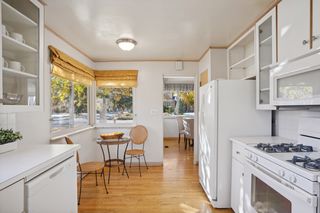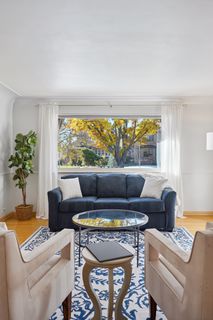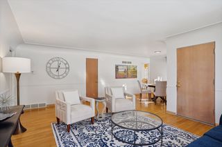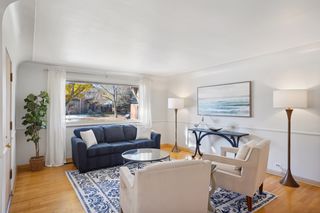 Upon entering, you'll find a home filled with character & modern updates. The living & dining rooms boast coved ceilings & hardwood flooring, complemented by large, double-pane windows flooding the home with natural light.